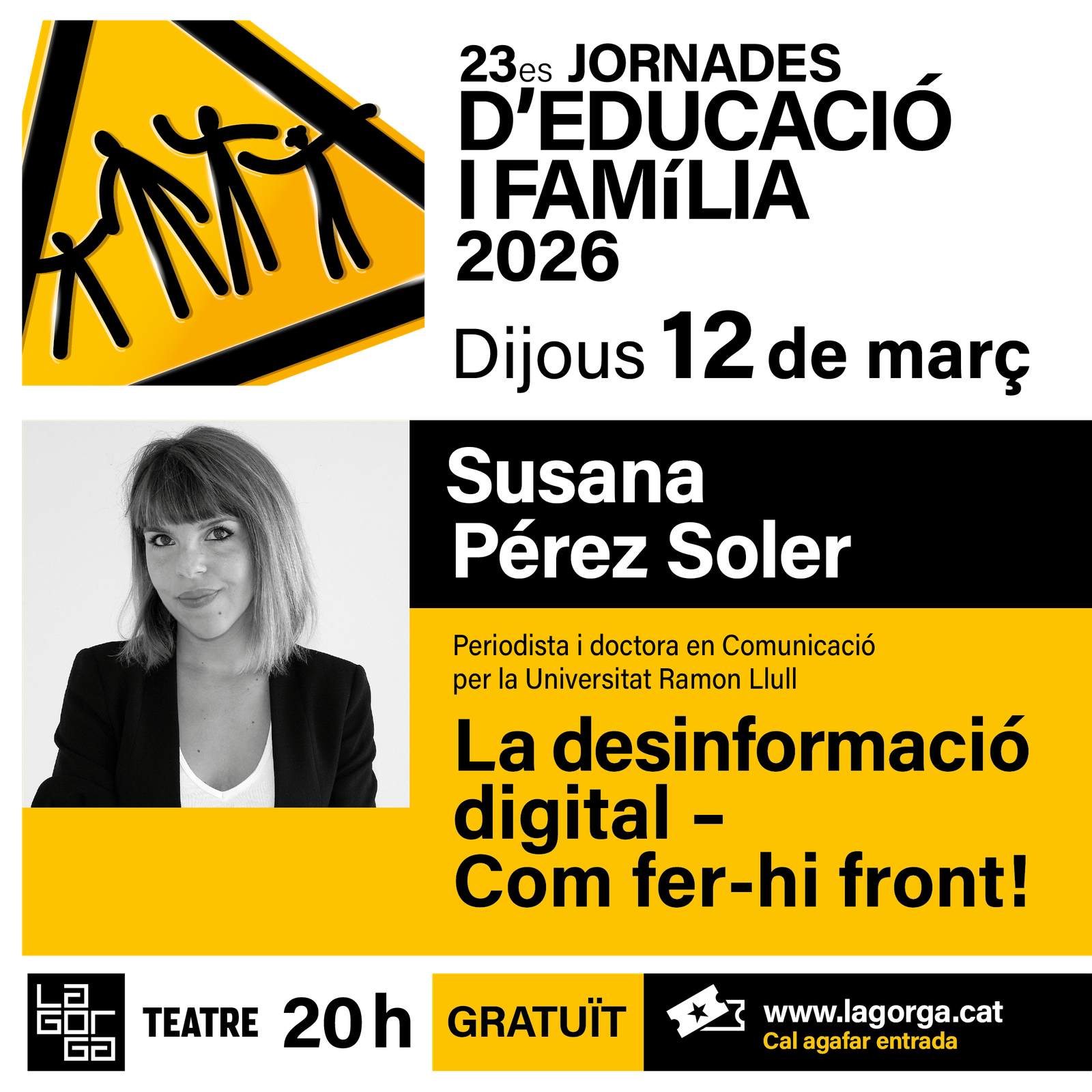Totes les conferències programades dins aquesta edició de les Jornades d’Educació i Família 2026 tindran lloc al Teatre La Gorga (c/ de les Notaries) a partir de les 20 h, i tenen l’entrada gratuïta, però cal fer la reserva prèvia al web: www.lagorga.cat.
