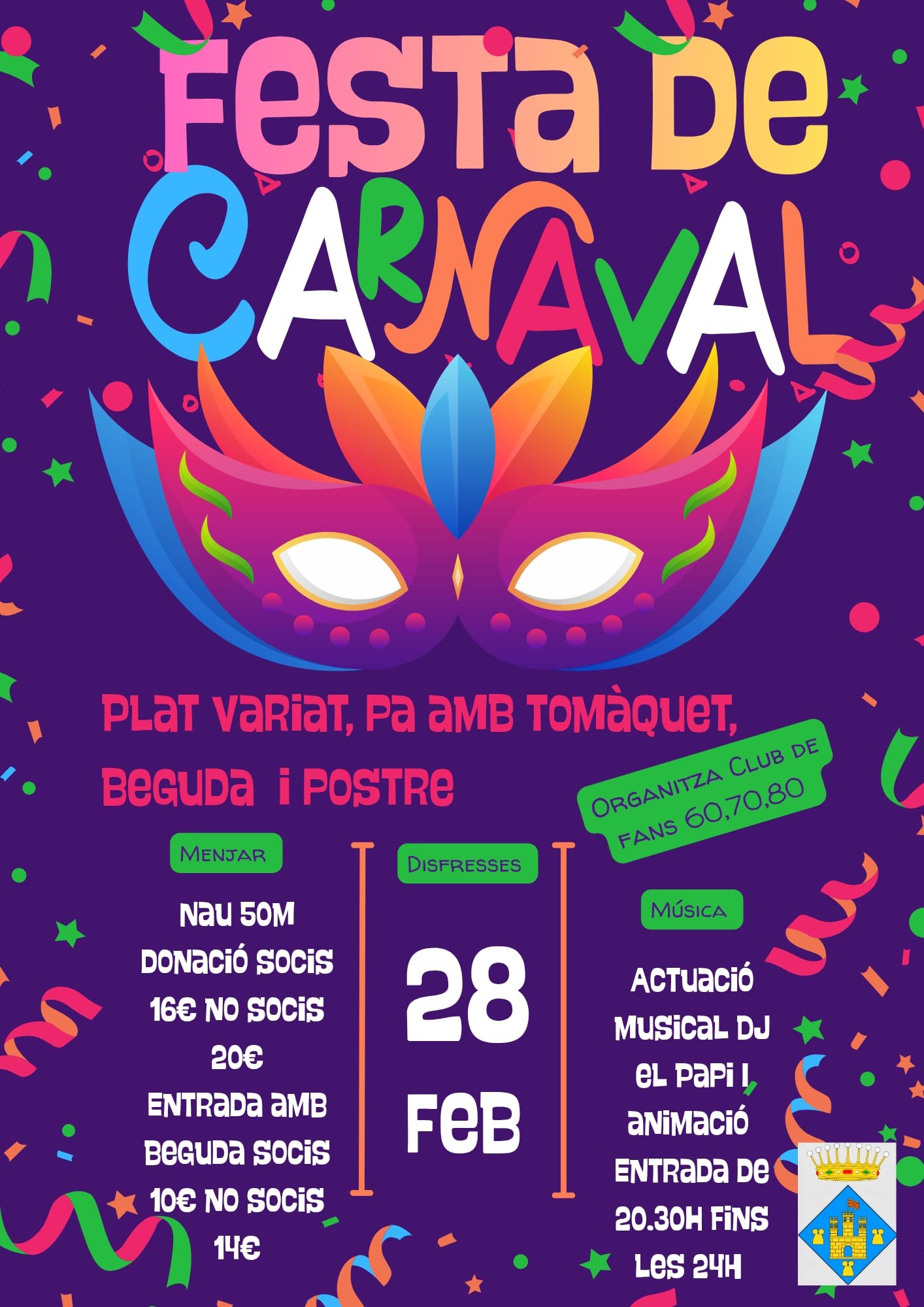 L’Associació Clu de Fans dels 60s, 70s i 80s organitza un Ball de Carnaval amb sopar i disfresses a la Nau dels 50 metres.