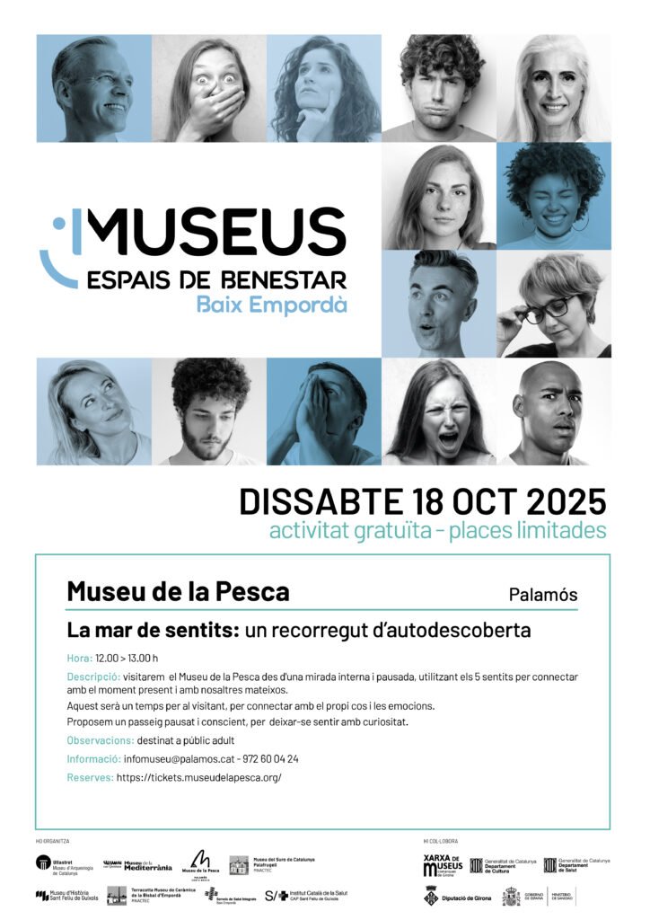 Activitat dins del programa Museus Espais de Benestar on podràs visitar el Museu de la Pesca des d’una mirada interna i pausada utilitzant els 5 sentits per connectar amb el moment present i amb tu mateixos. Amb la col·laboració del Servei de Salut Integrats del Baix Empordà (SSIBE).