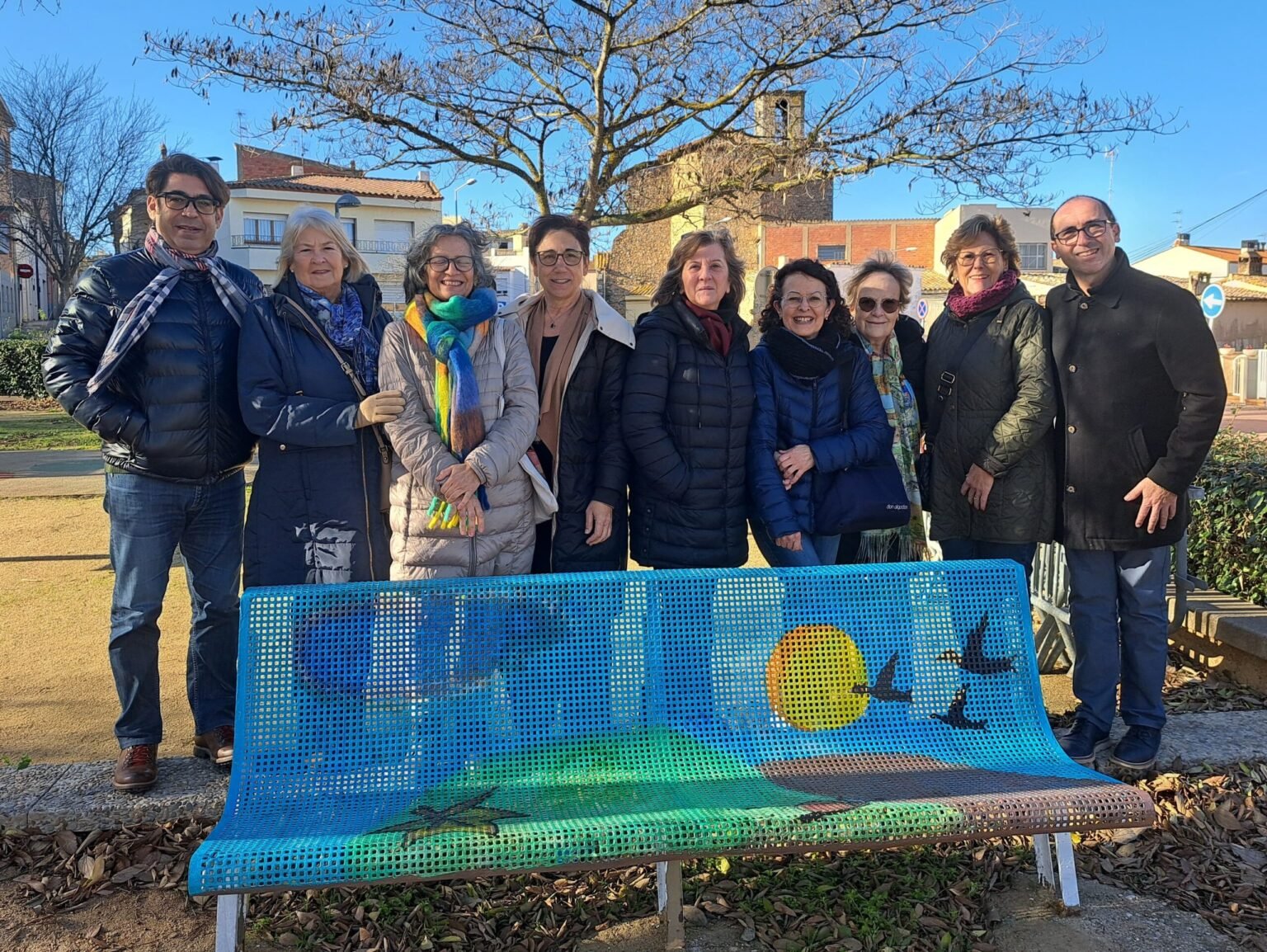 L’acte de presentació dels bancs pintats va comptar amb la presència de la responsable d’Oncolliga a Palamós, Hortènsia Doporto; l’alcalde de Palamós, Lluís Puig; i del regidor de Brigada, Pere Deulofeu, acompanyats de les alumnes del taller.
