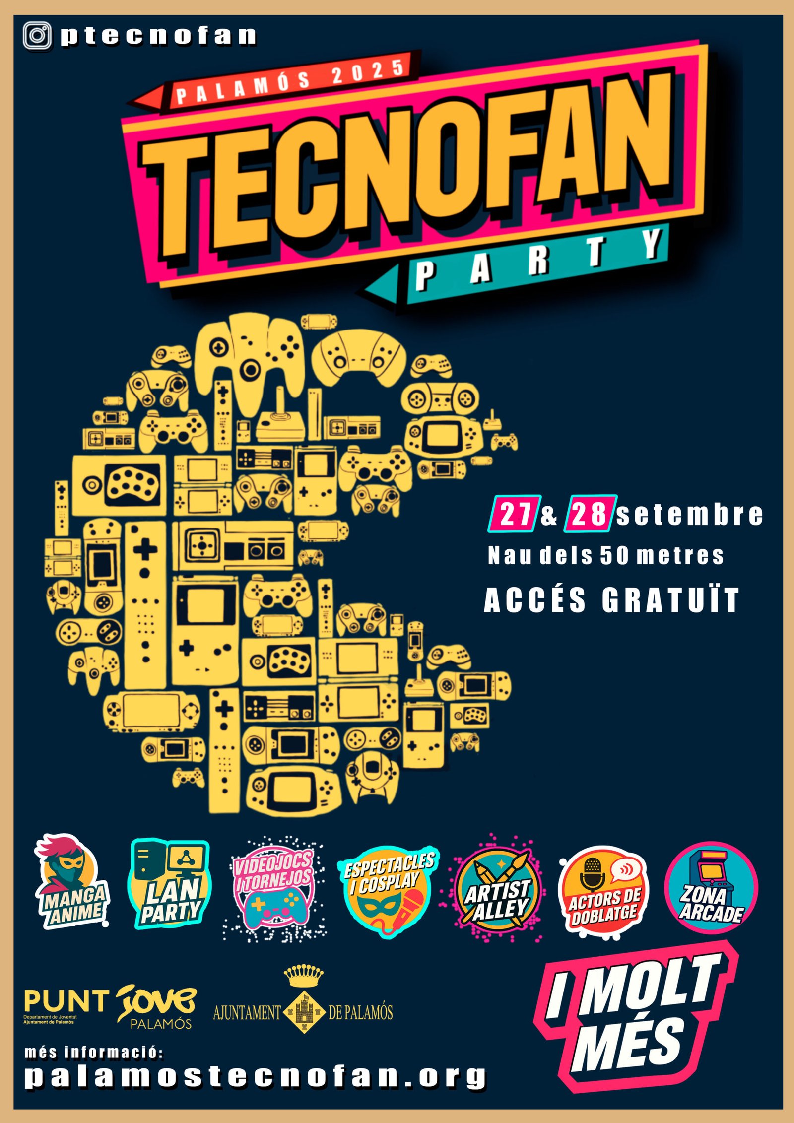 Tot a punt a la Nau dels 50 metres de Palamós per acollir una nova edició de la veterana Tecnofan Party a partir d’aquest proper divendres 26 de setembre. La festa de la cultura digital a Palamós, oferirà un any més activitats per a endinsar-se en el món digital, de les tecnologies i dels videojocs, de manera totalment gratuïta.