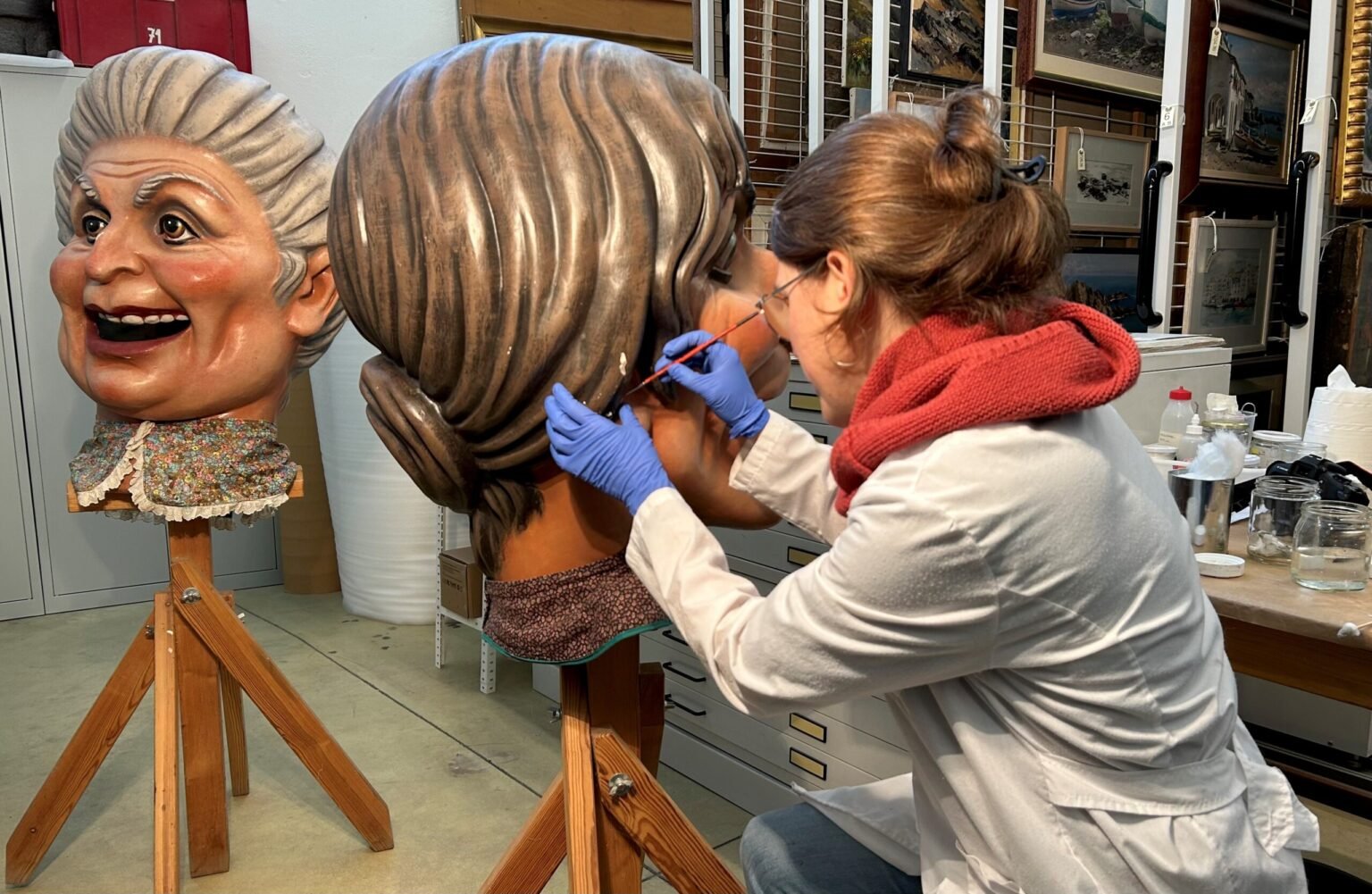Durant aquesta setmana s’han iniciat les tasques de conservació i restauració dels quatre capgrossos que acompanyen la parella de gegants de Palamós.