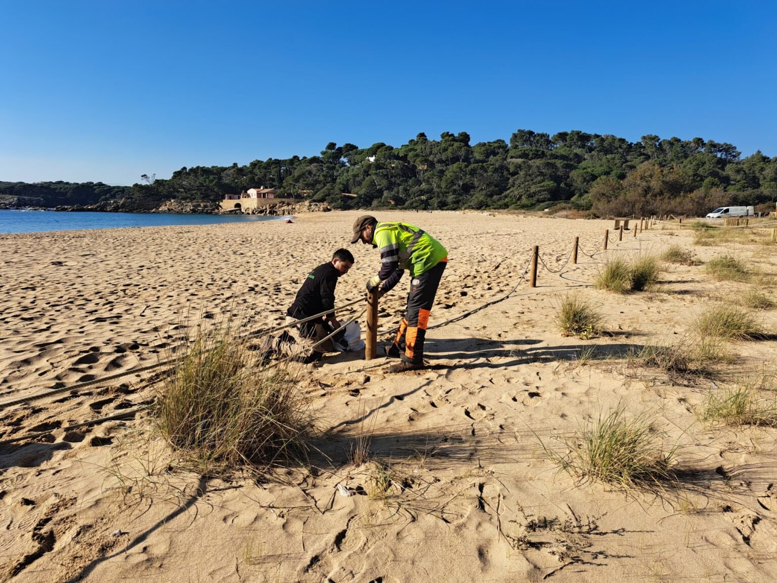 També s’han fet tasques de manteniment dels sistemes de retenció de sorra, i del confinament de la zona de dunes que té la platja, renovant les parts malmeses i permeten així avançar en la recuperació d’aquest destacat ecosistema.