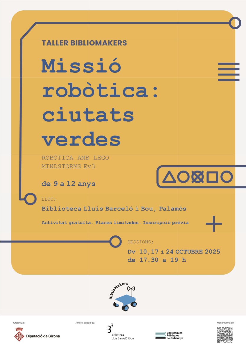 Biblioteca Lluís Barceló i Bou Parc dels Països Catalans, 1, Palamós, EspanyaInfantil i FamiliarMissió robòtica: ciutats verdes (robòtica amb Lego Mindstorms Ev3)En grups cooperatius (3-4 persones), els nois i noies construiran i programaran mitjançant els blocs actuadors el seu primer robot fet amb Lego Mindstorms, amb l'objectiu és ajudar a restaurar una ciutat després d'una tempesta. Els robots hauran de navegar per les runes i fer reparacions que […]