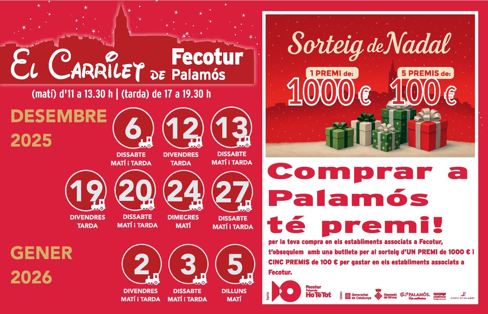 Carrers de Palamós - Centre Comercial PalamósEspectacles i OciAquest Nadal, FECOTUR i els comerciants de Palamós han preparat un munt d’activitats! Els nens i nenes podran pujar al Carrilet de Fecotur i fer un viatge pels carrers més cèntrics de la vila. Aconseguireu el tiquet per pujar al carrilet quan feu les compres en els establiments associats a Fecotur! A més, també rebreu […]