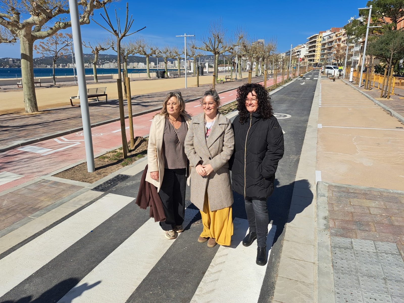 Aquest matí (26/03/25) l’alcaldessa i la vicealcaldessa de Palamós, acompanyades de la regidora d’Urbanisme, han presentat en roda de premsa, la finalització d’aquesta primera fase del projecte. L’obra executada ha suposat l’arranjament i transformació global del passeig, que preservant els elements que més el caracteritzen, com la superfície de sauló central, les arcades o parts del mur que el separa de la platja Gran, millora l’accessibilitat ampliant les zones de vianants i genera grans espais de prioritat invertida, potenciarà la connexió amb els carrers que l’enllacen amb la zona urbana.