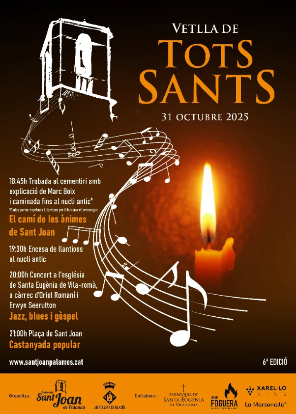 El programa s’obrirà amb la primera de les propostes que amb motiu d’aquesta festivitat organitza l’Associació de Veïns de Sant Joan. Es tracta de l’anomenat “Camí de les ànimes”, que s’iniciarà a les 18:45 h al cementiri de Sant Joan, amb la descripció històrica i de l’activitat que realitzarà Marc Boix, i amb la posterior caminada que els participants faran fins al nucli antic, on es durà a terme una encesa dels llantions que aquella nit il·luminaran carrers i places de Sant Joan, així com l’església de Santa Eugènia.