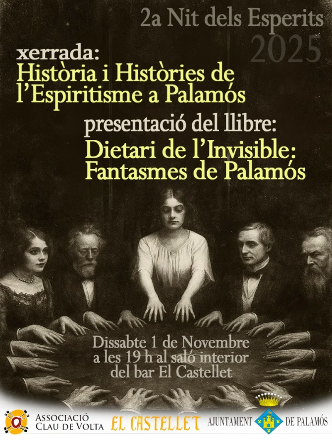 Un any més l’Associació local Clau de Volta participarà de les activitats previstes amb motiu de Tots Sants, programant la “2a Nit dels Esperits”, en aquest cas amb la xerrada “Història i històries de l’espiritisme a Palamós”, així com la presentació del llibre “Dietari de l’invisible. Fantasmes de Palamós”. Aquesta activitat tindrà lloc al saló interior del bar El Castellet, a partir de les 19 h.