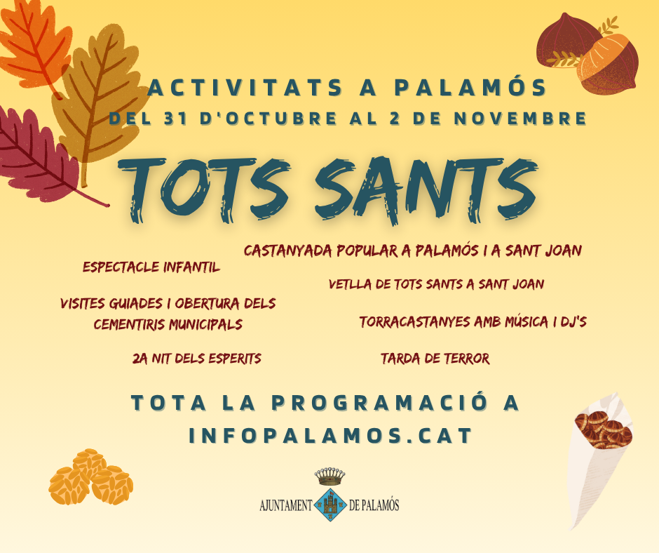 Aquest calendari d’activitats s’iniciarà divendres vinent 31 d’octubre i s’allargarà durant el cap de setmana, i inclou tant les accions que organitza l’Ajuntament de Palamós com aquelles que són iniciativa d’entitats locals i que compten amb el suport i la col·laboració municipal.