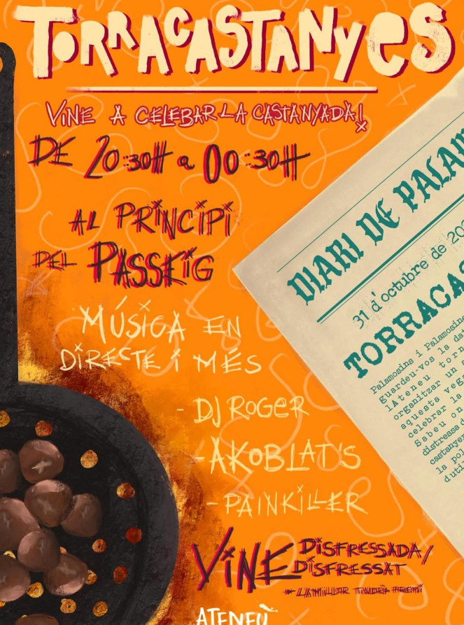 Aquest mateix dia l’Associació local l’Ateneu durà a terme al passeig del Mar, a partir de les 20.30 h i fins a la mitjanit, l’activitat “Torracastanyes”, amb la música en directe de Dj Roger, Akoblat’s i Painkiller.