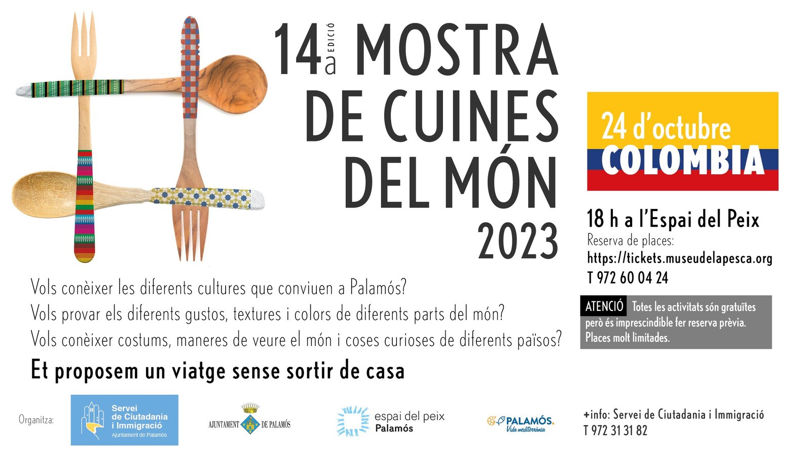 Espai del Peix Moll pesquer, s/n, PalamósGastronomiaLa 14a edició de la mostra de Cuines del Món fa protagonista la gastronomia tradicional de Colòmbia, a l'Espai del Peix.