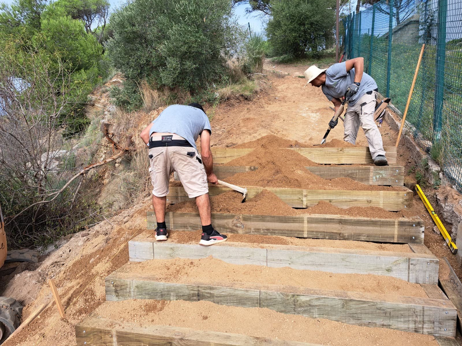 Per això s’ha previst que el projecte permeti l’arranjament dels accessos al parc, amb l’adequació d’algun dels camins. Precisament les obres s’han iniciat amb la construcció d’una nova escala, formada per travesses de fusta, que donarà accés a aquest àmbit des del carrer de Mas Guàrdia.