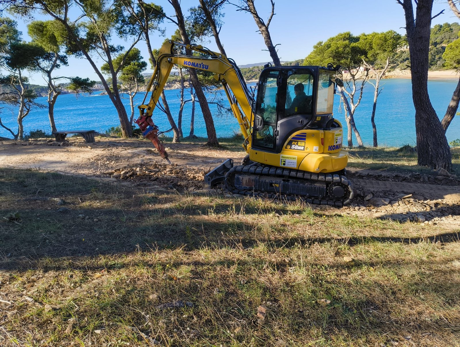 Aquesta setmana s’han dut a terme les tasques d’arranjament del tram de camí de ronda que connecta la platja de Castell (passant per darrere les edificacions que van acollir l’estudi del pintor Josep Maria Sert) amb el jaciment del poblat ibèric, ubicat damunt el promontori de Castell.